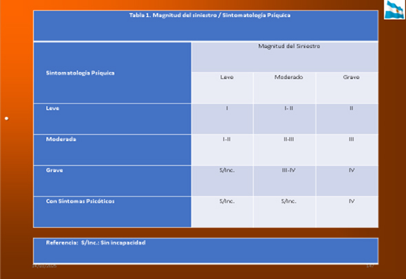 - La Ley como se afirmó al inicio, asigna porcentaje a las “Secuelas definitivas irreversibles”, con la Metodología de Capacidad Residual Restante, sobre la cual se agregan los Factores de Ponderación; en la presente Tabla se modificó el criterio de Ley, la secuela psicofísica puede ser leve y definitiva, pero va a tener un porcentaje mayor según que el evaluador considere que el evento psicotraumático es leve, moderado o severo…